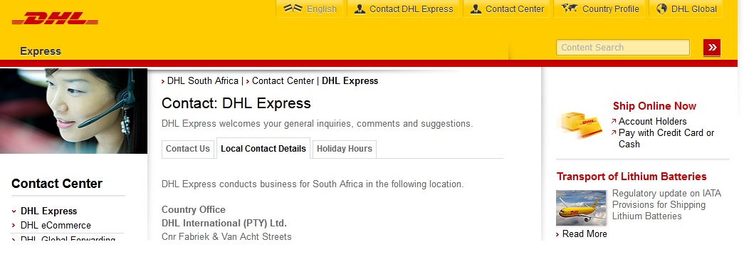 Website : http://www.dhl.co.za/en/contact_center/contact_express.html#local_contact