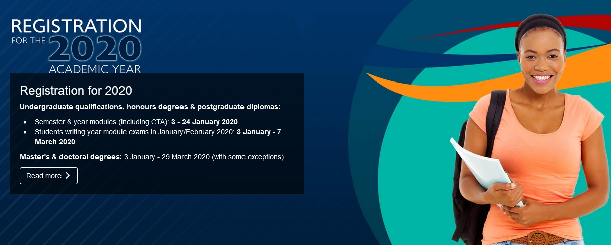Successful applicants and re-registering students must register to study through Unisa in 2020.