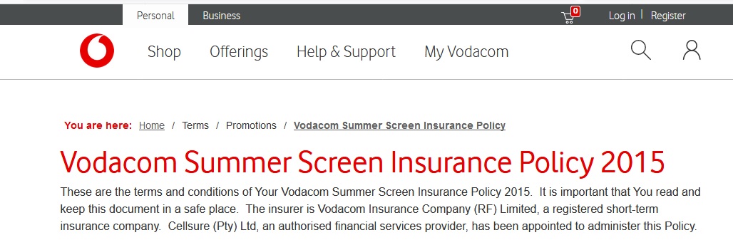 ** Vodacom Screen Insurance is a monthly renewable policy that offers flexible premium payment options.