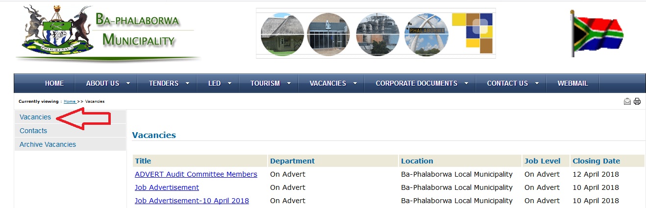 Website : http://www.phalaborwa.gov.za/vacancies/vacancies.php