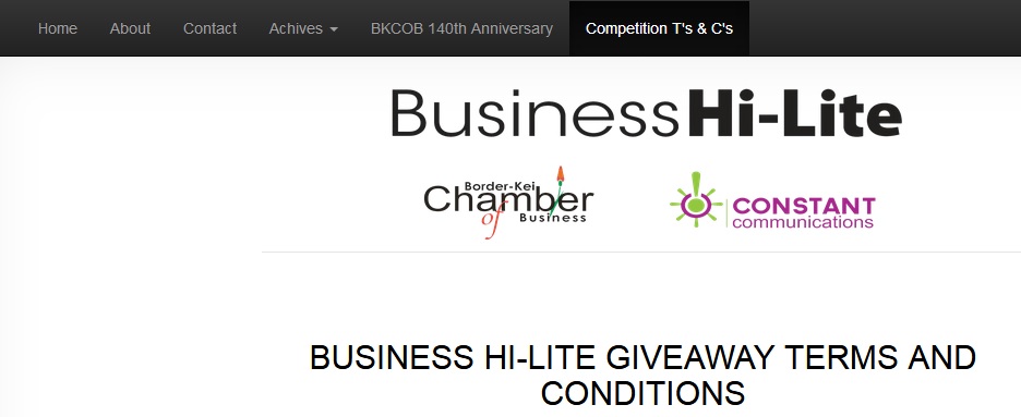 ** Individuals are entered into the competition and eligible to win by entering via an E-mail or an inbox message on the Facebook page of Business Hi-Lite