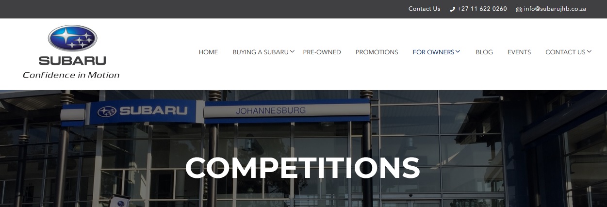 ** Route to entry for the competition and details of how to enter are via subarujhb.co.za or via our social media platforms.