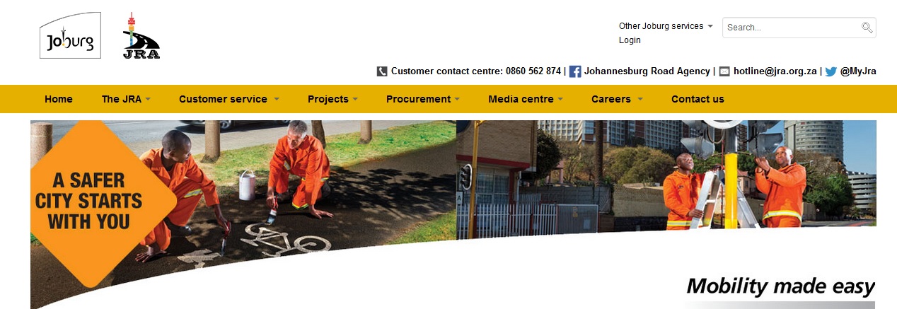 The Johannesburg Roads Agency (JRA) is a municipal entity of the City of Johannesburg that is responsible for the construction, maintenance, and management of the city’s roads, stormwater systems, and bridges.