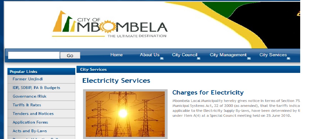 ** Mbombela Local Municipality hereby gives notice in terms of Section 75A of the Local Government Municipal Systems Act, 32 of 2000 (as amended), that the tariffs indicated herein, fees and charges applicable to the Electricity Supply By-laws, have been determined by the Council by a majority vote under Item A(4) at a Special Council meeting held on 25 June 2010.